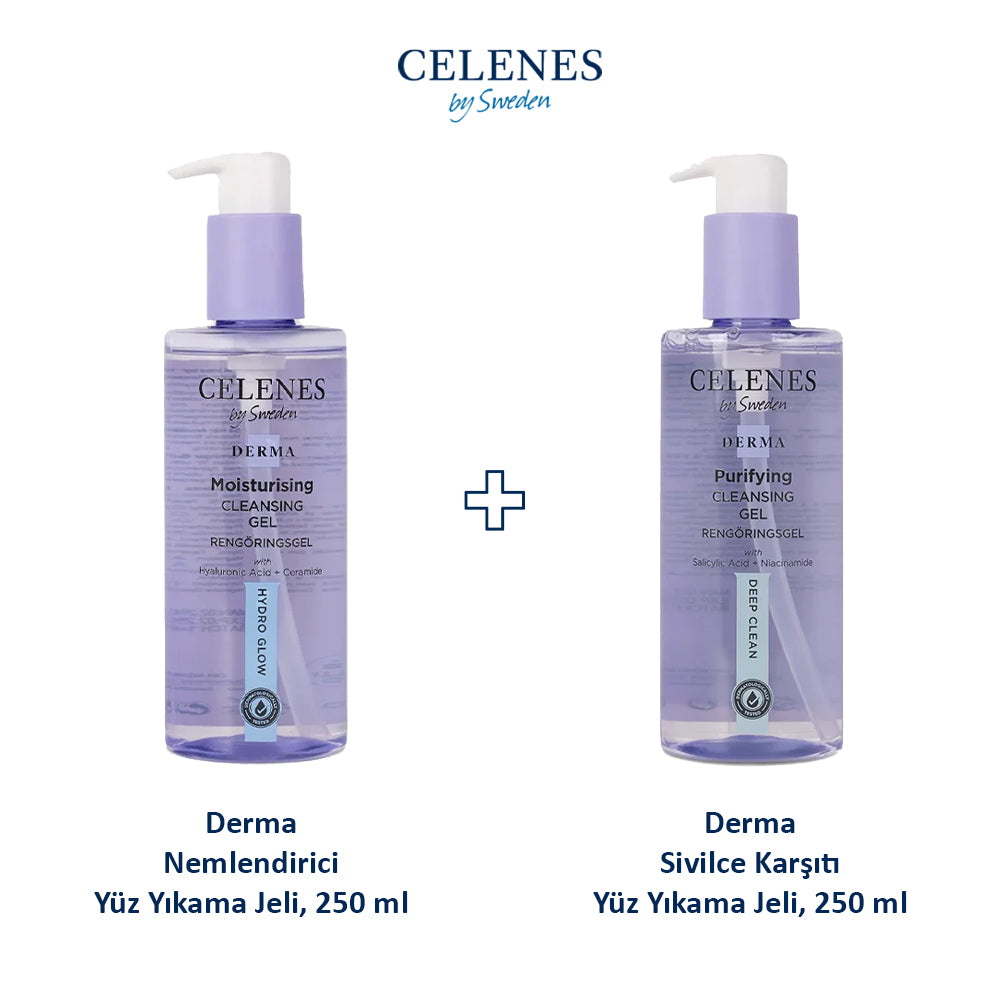 Derma Nemlendirici Yüz Yıkama Jeli, 250 ml + Derma Sivilce Karşıtı Yüz Yıkama Jeli, 250 ml